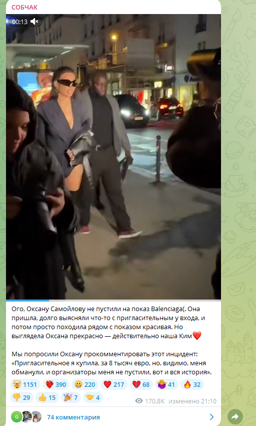 Журналистка Ксения Собчак рассказала, как блогера Оксану Самойлову, известную также как супруга рэпера Джигана, выгнали с парижской Недели моды. Заодно публика получила ответ на свой наболевший вопрос: "Кто их туда пустил?", звучащий каждый раз, когда отечественные "звёзды" блогосферы появляются на крупных зарубежных мероприятиях. Оказывается, билет туда они просто покупают - и в этот раз Самойлову обманули, продав ей "липовое" приглашение. Ну а поскольку конфуз случился на глазах у Собчак, очень быстро об этом стало известно всему свету.