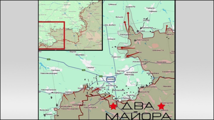 Первоначально острие охватывающего удара было направлено на небольшой городок районного значения - Родинское, лежащее примерно в 3 километрах от северных окраин Мирнограда. В какой-то момент наши передовые группы разведчиков даже добрались до его окраин, однако ВСУ успели подвести резервы, после чего продвижение если не остановилось, то сильно замедлилось,