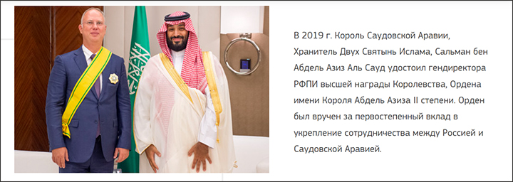 Основная задача РФПИ - инвестиции в русскую экономику, а также в зарубежные. Едва ли наследный принц Саудовской Аравии и президент Франции стали бы награждать Дмитриева за вред, причинённый их странам. Напротив, это были обоюдно выгодные проекты.