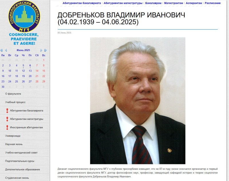 ФОТО: СКРИНШОТ СТРАНИЦЫ САЙТА СОЦИОЛОГИЧЕСКОГО ФАКУЛЬТЕТА МГУ