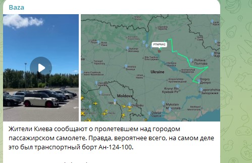 Жители Киева массово сообщили о пролетевшем над городом "пассажирском самолёте". Однако, вероятнее всего, речь идёт о транспортном Ан-124-100.