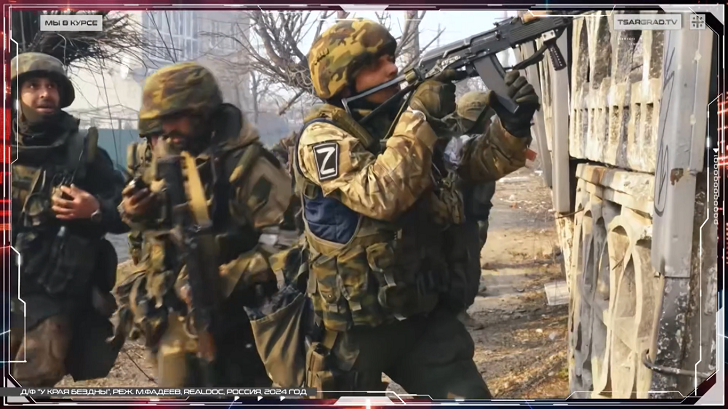 Фильм "У края бездны" по праву занял высшую строчку в топ-рейтинге онлайн-платформ. Это история об участниках специальной военной операции, освобождавших Мариуполь. Уникальность этого фильма в том, что зритель имеет возможность увидеть всё от первого лица, поскольку снимали его в условиях реальных боевых действий. Его авторы - Максим Фадеев и Сергей Белоус.