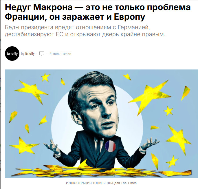 И в этом хаосе Макрон не спасатель, а символ утопающего континента. Его неудачи - это зеркало Европы, которая утратила волю к решительным действиям.