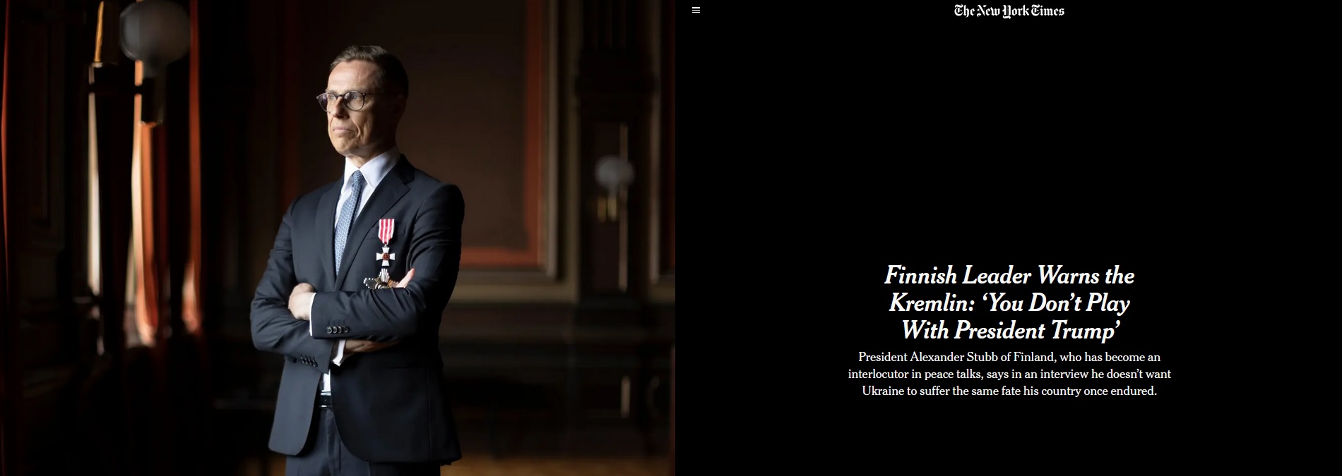 Президент Финляндии Александр Стубб считает, что Украине придётся пойти на территориальные уступки. Об этом он заявил в интервью американской газете The New York Times.