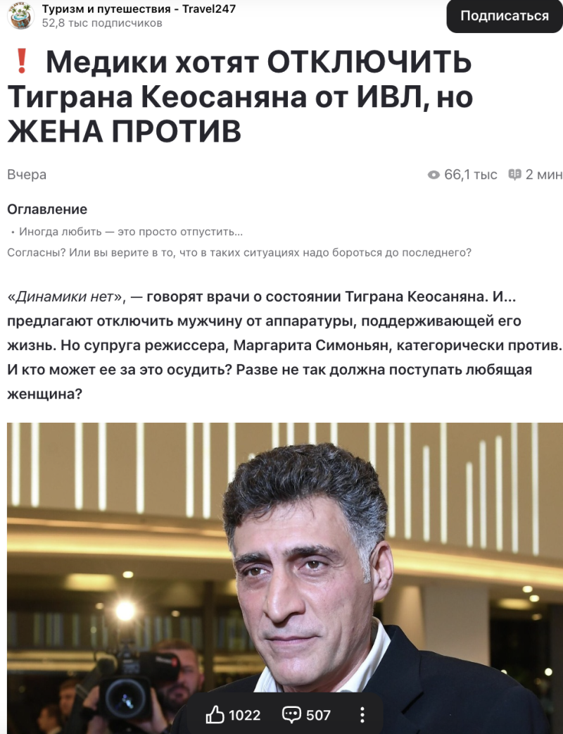 "Медики хотят отключить Кеосаяна от ИВЛ, жена против": Когда погоня за хайпом становится невыносимой