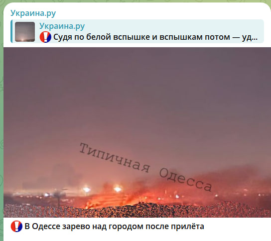 Вторые сутки очень жёстко летит по Одесской области. Ракеты и дроны уничтожают порты, склады и, по слухам, досталось даже кораблям, которые перевозят оружие, которое так рьяно выбивал Макрон для Киева. Прилетело и по "французскому бизнесу". Военволонтёры канала "Два Майора" пишут:
