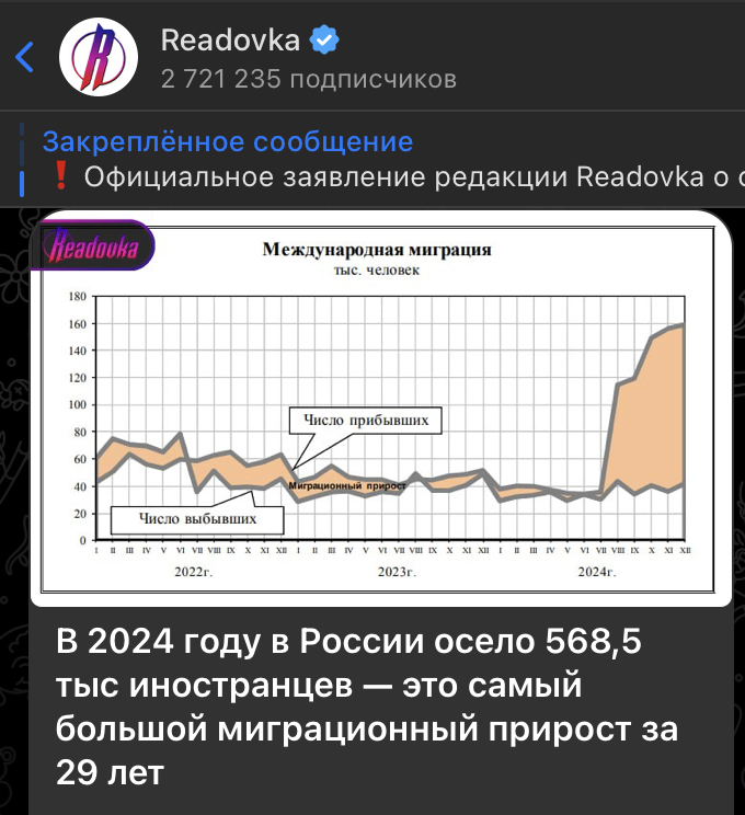 МВД подвело итоги работы с мигрантами за 2024 год, и, стоит признать, порадовали хорошие новости, но есть нюанс, о котором не упомянули в официальной сводке. Царьград не раз объяснял, почему "армия гостей" может вспыхнуть в любой момент, и пришло время вновь напомнить о главном: в прошлом году зафиксирован рекордный миграционный прирост, составивший 568,5 тысячи человек. Что всё это значит - читайте в материале.