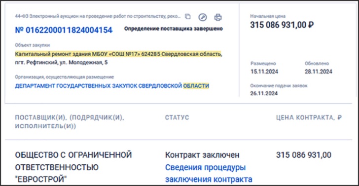 Госконтракт по президентской программе на 315 млн рублей фактически сорван. Кто ответит?// Скриншот с сайта zakupki.gov.ru