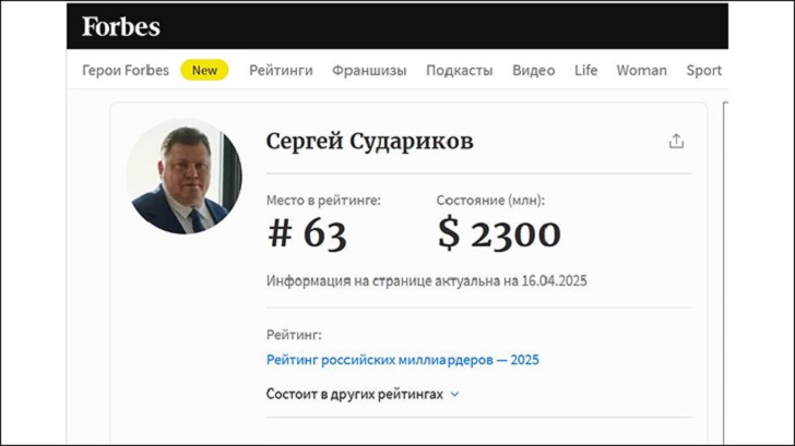 По оценкам Forbes, Сергей Судариков занимает солидные позиции среди отечественных богачей. Скриншот: интернет-сайт forbes.ru