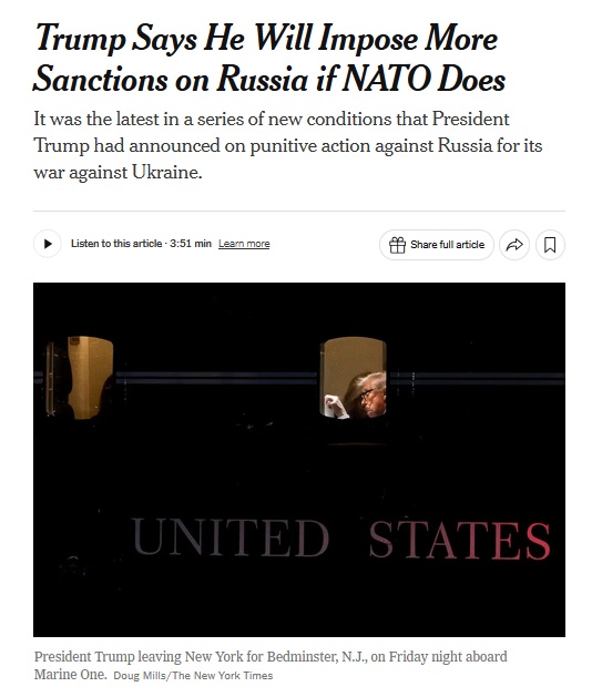 Ранее глава Белого дома написал в социальной сети Truth Social о готовности ввести серьёзные санкции против России, но при условии, что все страны НАТО откажутся от русской нефти. Вдобавок Трамп потребовал от союзников ввести пошлины от 50 до 100 процентов на китайские товары, заявив, что это якобы окажет значительное влияние на разрешение кризиса на Украине.