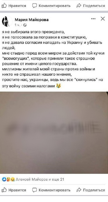 Возглавляет этот центр Мария Майорова. В 2022 году, вскоре после начала специальной военной операции (СВО), она опубликовала такой пост в запрещённой ныне социальной сети: