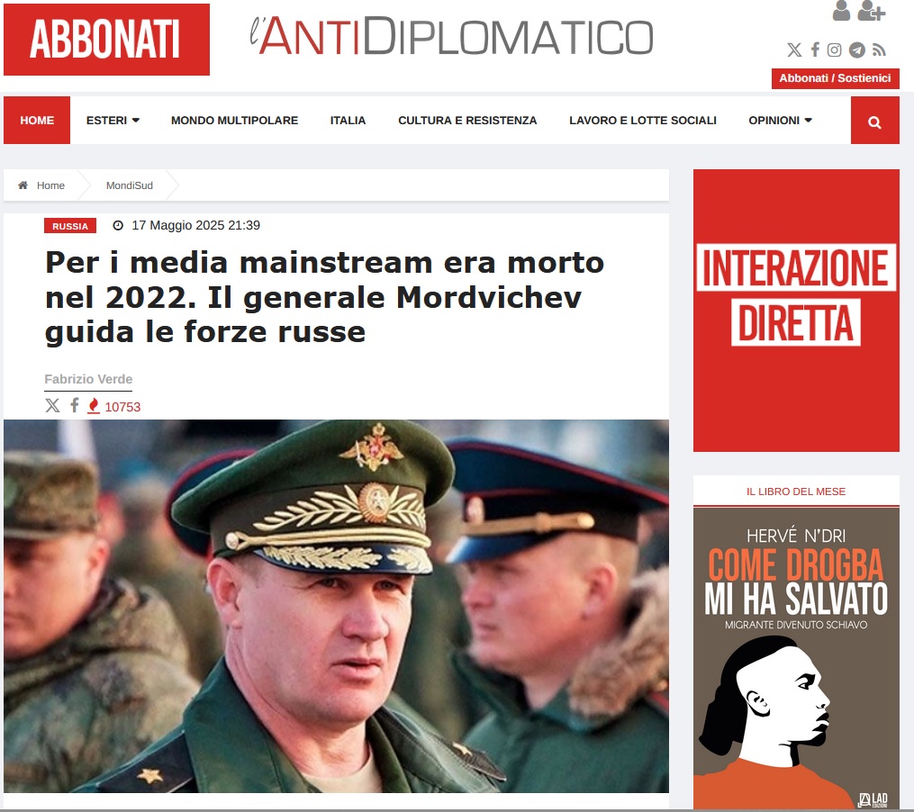 Генерал Андрей Мордвичёв не погиб в 2022 году, как писали некоторые СМИ, а жив и назначен главнокомандующим Сухопутными войсками Вооружённых сил России, пишет итальянская газета L'AntiDiplomatico. Назначение оценил военный обозреватель Царьграда Влад Шлепченко.