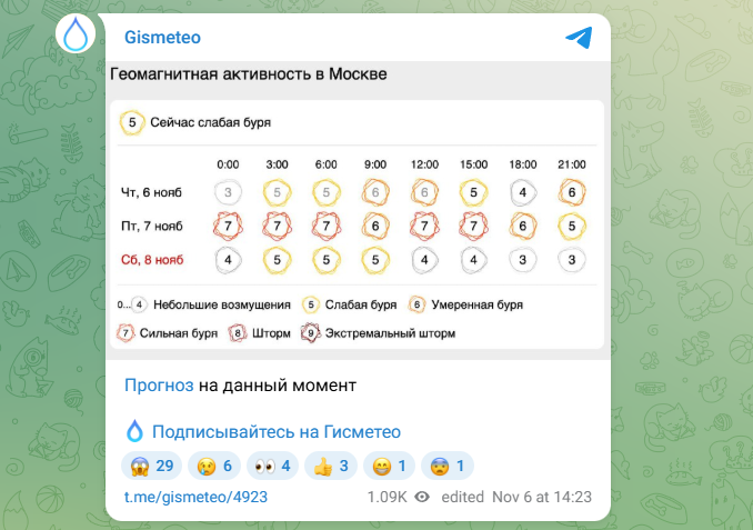 У наблюдателей нет сомнений, что завтра буря достигнет своего пика - и мощность её достигнет значения "сильная". Более того, ожидается, что геомагнитные возмущения станут самыми серьёзными не только за текущий год, но вообще за последние несколько лет.