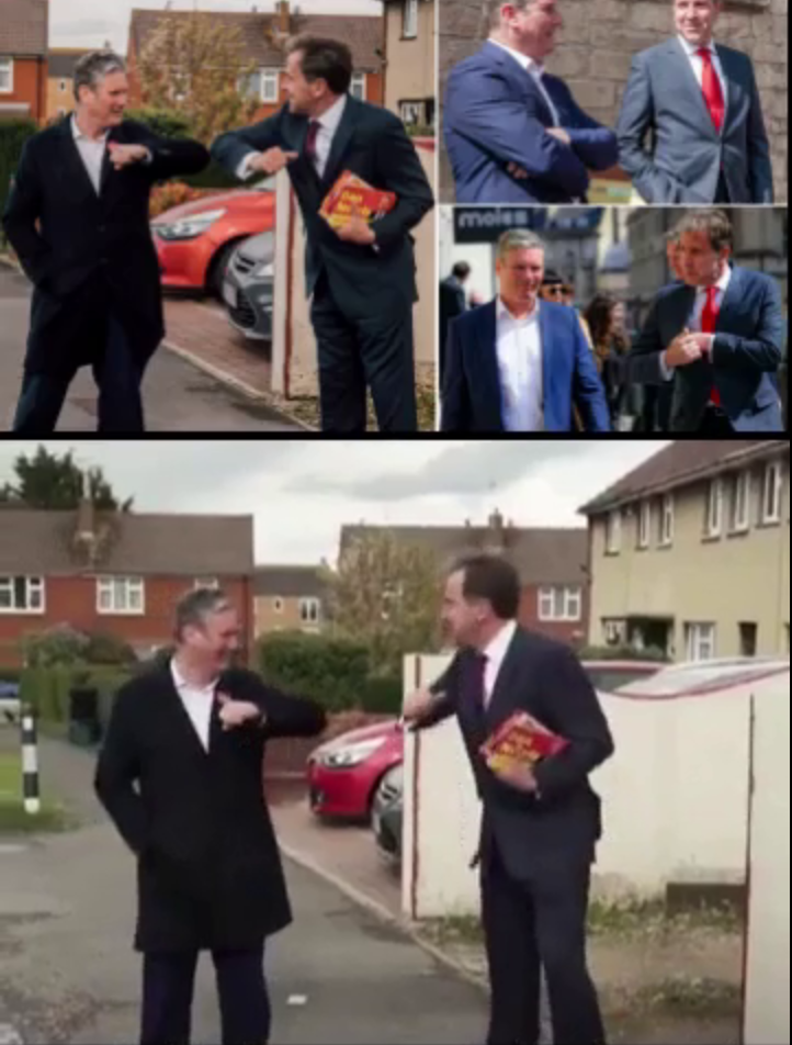Интернет-пользователи выложили в Сеть фото, где Кир Стармер "здоровается" с Дэном Норрисом локтями. Это был популярный дипломатический жест, заменяющий классические рукопожатия в ковидные годы.