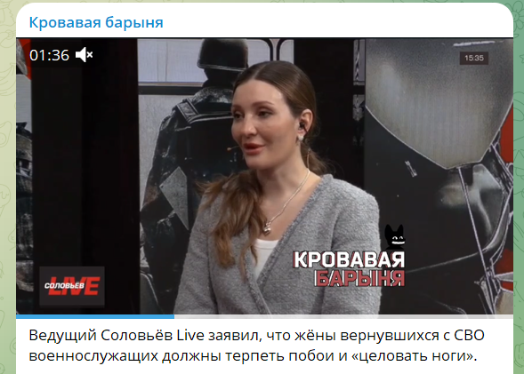 Передача "Соловьёв Live" снова оказалась в центре скандала. Ведущий политического шоу Сергей Карнаухов призвал жён вернувшихся с СВО бойцов с ПТСР целовать ноги мужьям и терпеть насилие. Но такой совет не понравился участвовавшей в передаче журналистке Анастасии Кашеваровой: "Если ты на СВО герой, я тебе должна ноги целовать, а ты будешь моего ребёнка и меня мучить?" На скандал обратила внимание Ксения Собчак - она теперь травит и Карнаухова, и Кашеварову.