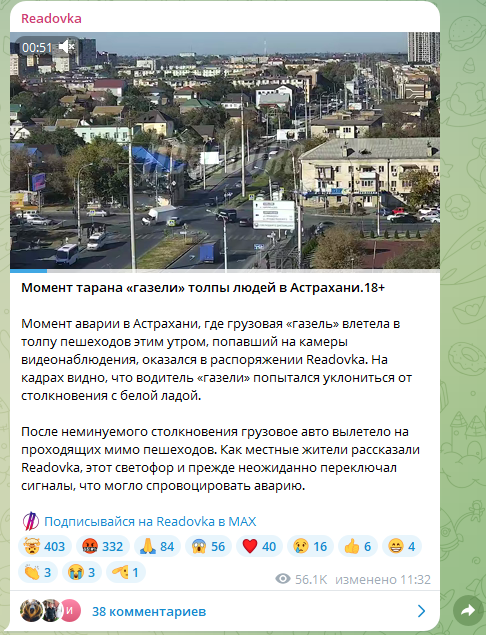 На видео, где "Газель" протаранила толпу в Астрахани, разглядели странное: "Светофор переключался неожиданно"