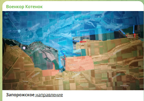 Котенок сообщает об интенсивных боестолкновениях на этом направлении. Встречные бои в районе Лобковое - Степное (Степовое) - Малые Щербаки - Щербаки. ВСУ контратакуют. Десантные подразделения 108-го и 247-го ДШП отражают накаты противника и продолжают продавливать его в Лобковом и Щербаках: