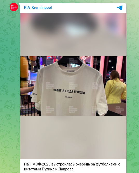 "Нафиг я сюда пришёл?" - именно эта цитата украсила белоснежную футболку, за которой в первый же день Петербургского международного экономического форума выстроилась очередь. Автор фразы - министр иностранных дел России Сергей Лавров.