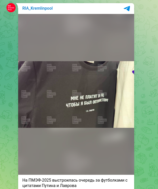 Ирония в том, что самого министра на площадке пока не было замечено. Однако его "участие" в мероприятии вполне осязаемо - на стенде Республики Башкортостан выдают одежду сразу с двумя цитатами дипломата. Помимо футболок с надписью "Нафиг я сюда пришёл", можно совершенно бесплатно получить и чёрную футболку с более классическим, но не менее запоминающимся выражением: "Мне не платят за то, чтобы я был оптимистом". Эти слова Лавров произнёс ещё в 2015 году во время переговоров по иранской ядерной программе в Лозанне. Тогда, напомним, стороны безуспешно пытались согласовать финальные условия, и терпение у многих подходило к концу.