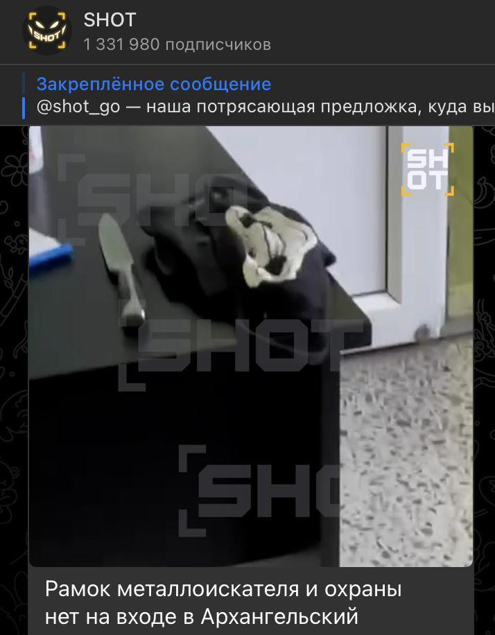 Рамок металлоискателя попросту нет. Скриншот: t.me/shot_shot/87232