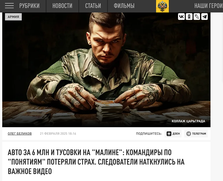 "Не командиры, а настоящие зэки" - "малину" на фронте вскрыл Виталий Бородин. Стыдно. Будут наказаны. Журналист Царьграда Олег Беликов в своей статье рассказал о преступлениях командиров 55-й мотострелковой бригады - "Каши" и "Якута" - и их приближённых. История получилась, мягко говоря, нелицеприятная…