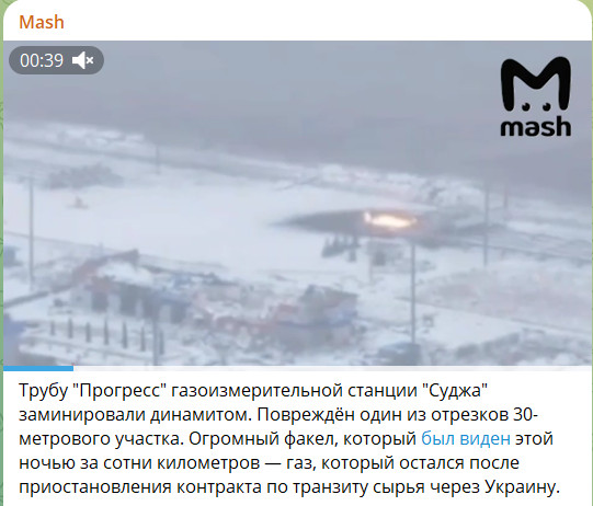 При этом Генштаб ВСУ попытался переложить ответственность на ВС России за ночной удар по ГИС "Суджа". Украинские войска не наносили ударов по станции, это сделали российские войска с целью обвинения Киева - говорится в заявлении Генштаба ВСУ.