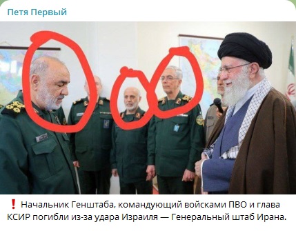 Всего, по данным Reuters, в результате израильских ударов погибло не менее 20 высокопоставленных иранских командиров. Кроме того, жертвами атаки стали учёные-ядерщики и их семьи.