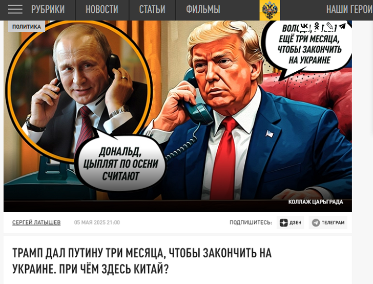 Трамп дал Путину три месяца, чтобы закончить на Украине. При чём здесь Китай? Фото: Царьград