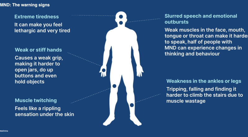 Усталость, слабость рук и ног, мышечные тики и невнятная речь - основные симптомы БДН. Скриншот с сайта dailymail.co.uk
