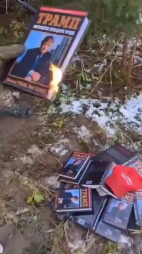 - заявил один из боевиков перед тем, как поджечь книгу Трампа и бросить её в костёр.