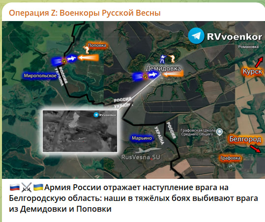 В Демидовке и Поповке Белгородской области также идут бои. Противнику развить сколько-нибудь успешные действия на данном участке фронта не удалось.
