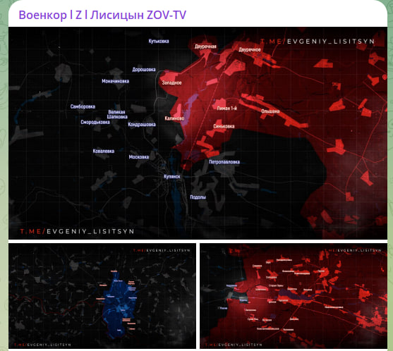 По данным военволонтёров канала "Два майора", на севере Купянского направления продолжаются бои на правом берегу р. Оскол. Вражеская администрация Купянска заявила, что ВС России подходят к самому Купянску, характеризуют ситуацию как сложную для ВСУ.