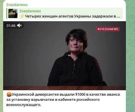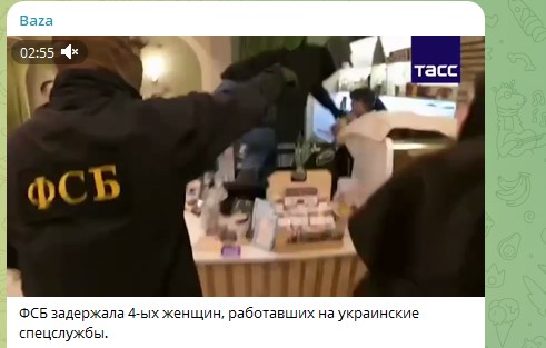 Четыре женщины - агенты СБУ были задержаны сотрудниками Федеральной службы безопасности России в Севастополе, Ростове-на-Дону и Воронеже. На оперативном видео, распространённом спецслужбой, женщины рассказали, что получали задания по изготовлению взрывчатки и слежке за русскими чиновниками и сотрудниками Минобороны России.