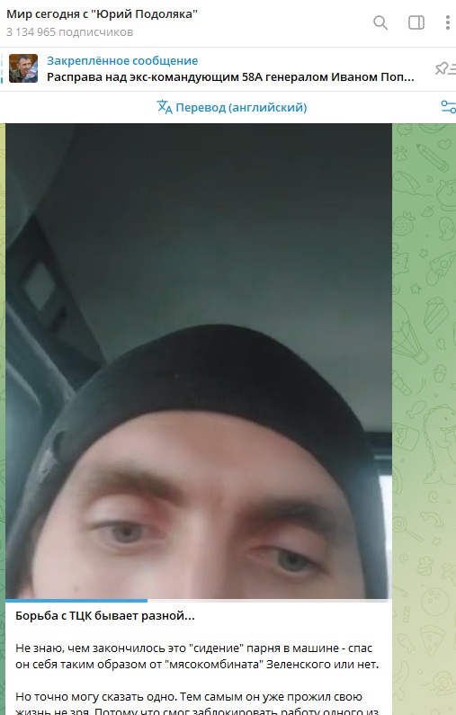 Как отметил военный блогер Юрий Подоляка, это тоже своего рода способ борьбы: "Не знаю, чем закончилось это "сидение" парня в машине - спас он себя таким образом от "мясокомбината" Зеленского или нет. Но точно могу сказать одно. Тем самым он уже прожил свою жизнь не зря. Потому что смог заблокировать работу одного из патрулей "мясников" минимум на 10 часов. А значит, спас несколько своих земляков от утилизации во благо "британского королька". И каждые следующие несколько часов этого вынужденного сидения спасают жизнь одного человека".