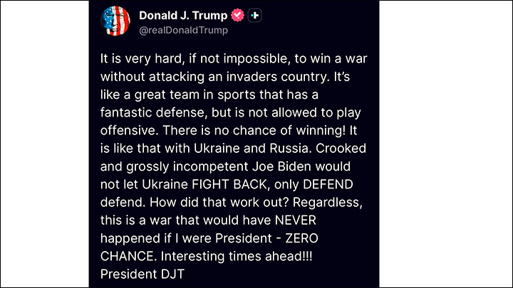 ТО САМОЕ СКАНДАЛЬНОЕ ЗАЯВЛЕНИЕ АМЕРИКАНСКОГО ПРЕЗИДЕНТА/СКРИНШОТ СТРАНИЦЫ СОЦИАЛЬНОЙ СЕТИ ТРАМПА