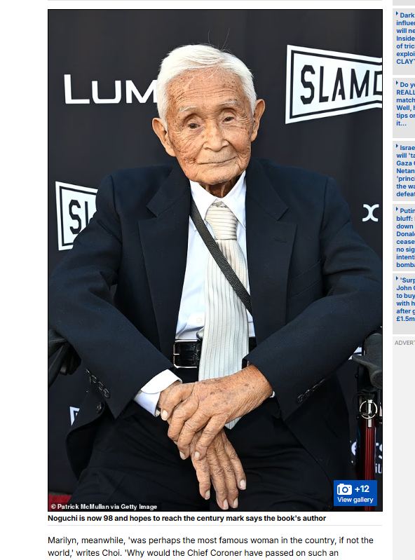 В 1962 году Ногучи был уже опытным коронером (это должностное лицо, которое в некоторых странах расследует смерти, имеющие необычные обстоятельства или произошедшие внезапно, и определяет причину смерти). Судьба распорядилась так, что именно ему пришлось исследовать тело Монро, кинозвезды, умершей в 36 лет - коронеру тогда было всего на год больше.