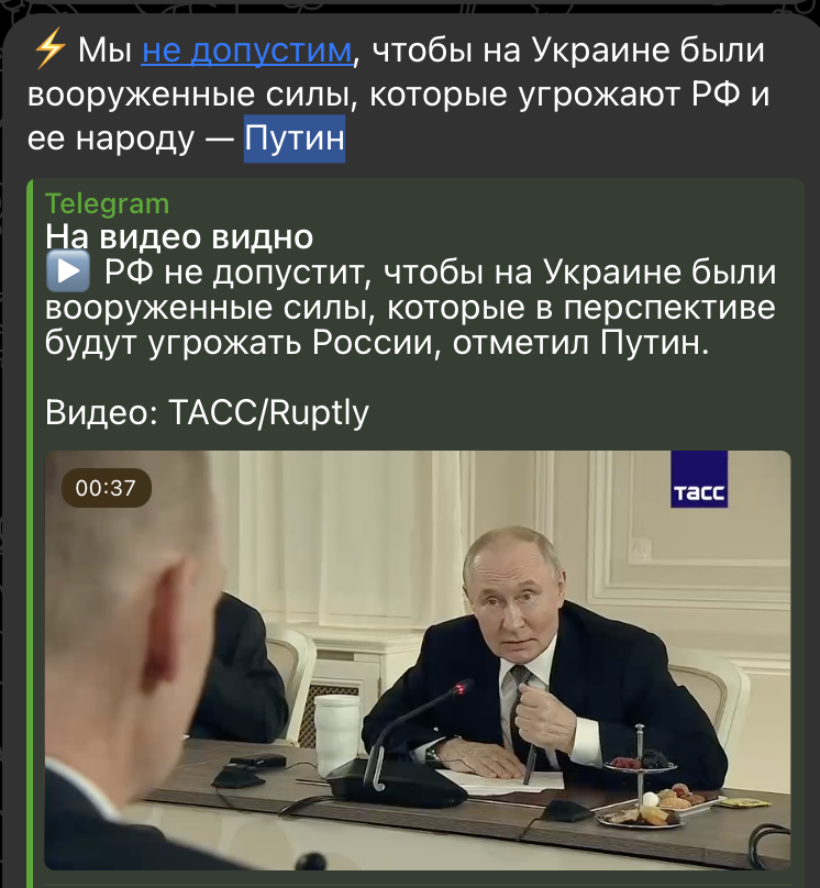 На встрече с журналистами русский лидер также подчеркнул, что Россия не допустит появления вооружённых сил на украинской территории, которые могут представлять угрозу для нашей страны и её граждан. Путин отметил, что военные действия на Украине не были инициированы Россией. Напротив, мы стремимся к их завершению.