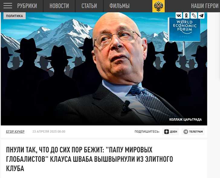 Пнули так, что до сих пор бежит: "папу мировых глобалистов" Клауса Шваба вышвырнули из элитного клуба. Фото: Царьград