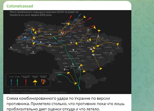 Схема комбинированного удара по Украине - по версии противника. Скриншот: Telegram/Colonelcassad