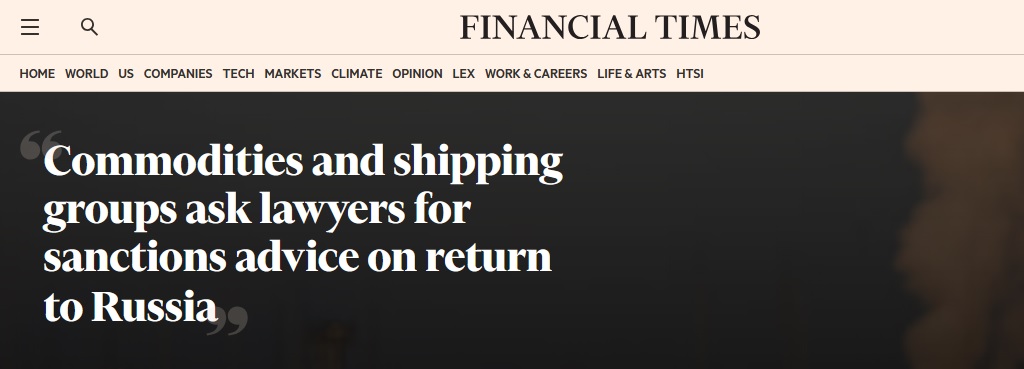 Западные компании готовятся к отмене антироссийских санкций, пишет FT. Они уже обсуждают с юристами, как это правильнее сделать.