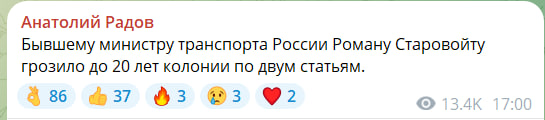 Кроме того, блогер в своём закрытом канале сказал и про врио главы Минтранса Андрея Никитина, отметив, что про него было слышно только хорошее, как в свою очередь это было с Андреем Белоусов, назначение которого на должность главы Минобороны все приветствовали.