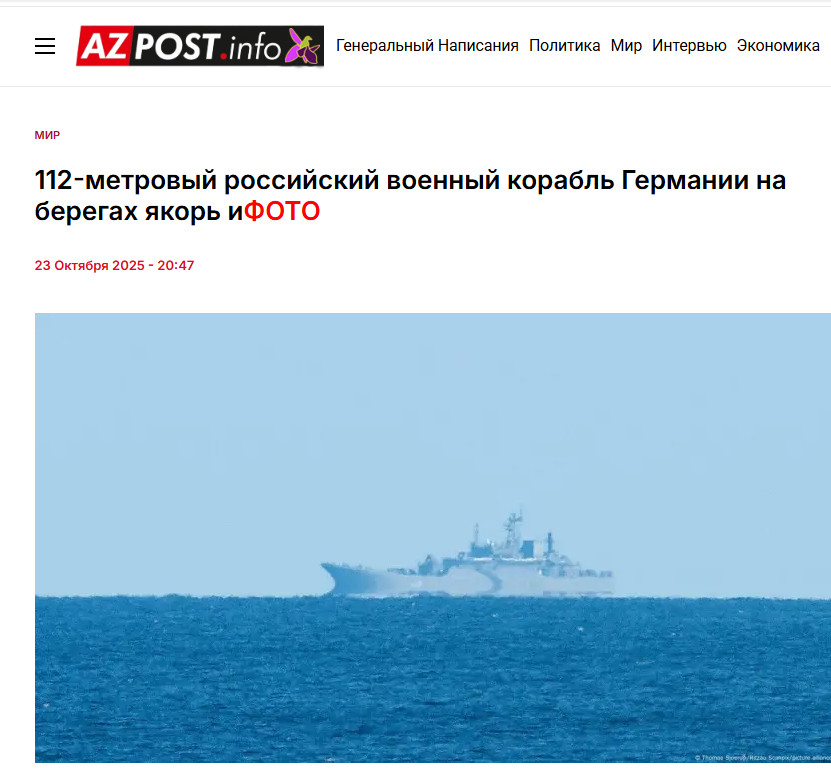 Тем не менее события у берегов Германии и паническая реакция немецких властей показывают, что в Европе всё чаще путают присутствие с угрозой, а демонстрацию флага - с актом агрессии. Один стоящий на якоре корабль вызвал совещания, заявления и повышенную тревожность в немецких СМИ.
