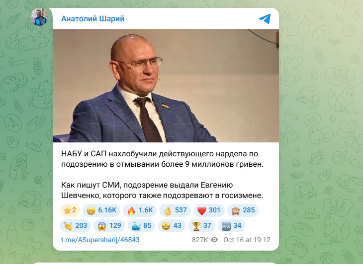 ФОТО: Скриншот https://t.me/ASupersharij