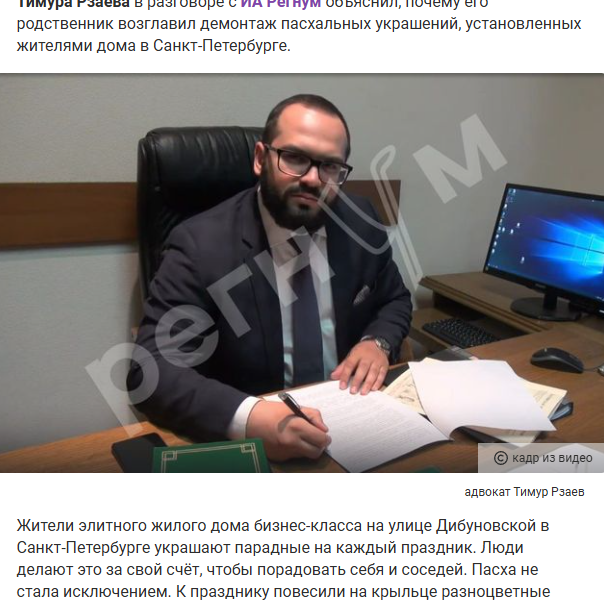 Интересно, что это за вера, заставляющая срывать пасхальные украшения, и если все принадлежат к вере Рзаева, то другие веры, получается, для него не в счёт?