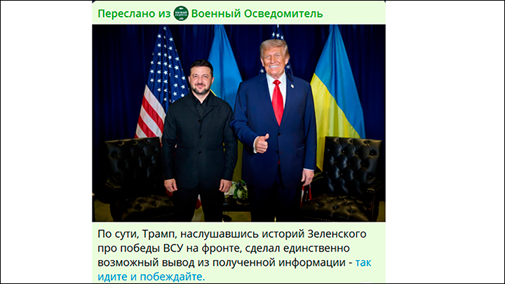 Сняв украинскую войну с шеи американского бюджета, Трамп больше не заинтересован в миротворчестве. Скриншот: ТГ-канал "Военный Осведомитель"