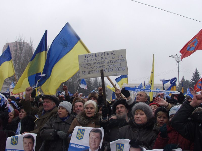 Где-то часам к 10 утра все начали подтягиваться и собираться у фонтанов у площади Ленина. Чуть позже - на самой площади Ленина, где уже была установлена большая сцена Партии регионов.