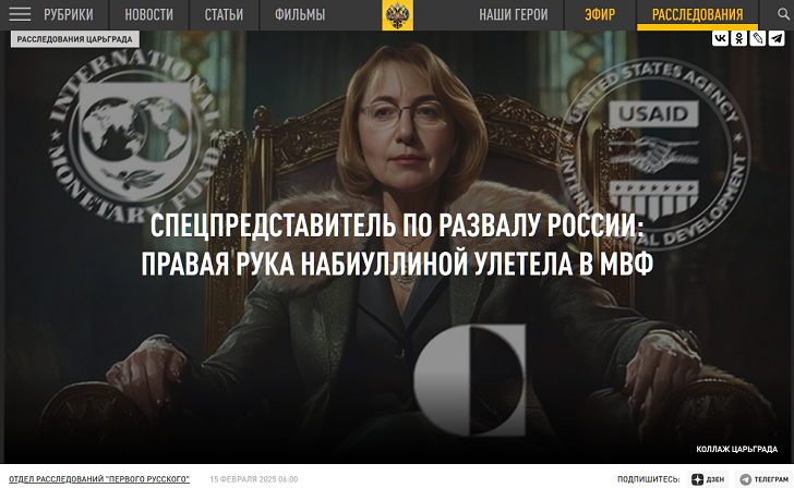Спецпредставитель по развалу России: Правая рука Набиуллиной улетела в МВФ Фото: Царьград