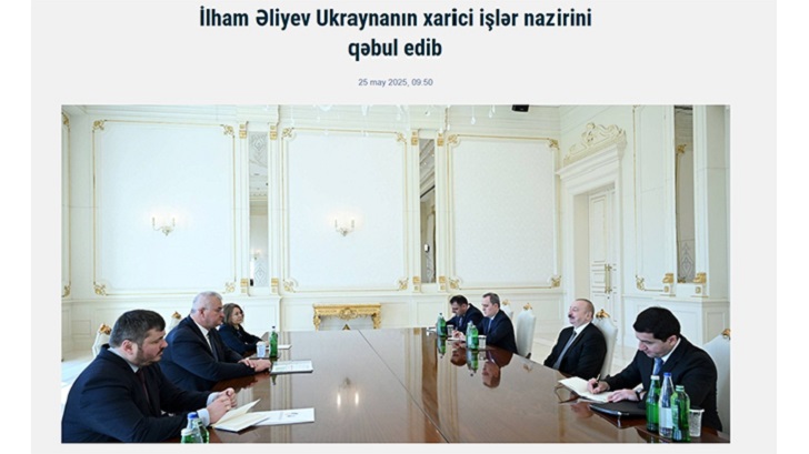 Алиев принял у себя украинскую делегацию. Скриншот страницы официального сайта президента Азербайджана