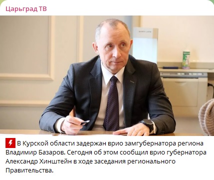 Задержан врио замглавы Курской области Базаров, идёт следствие. Чиновника обвиняют в хищении 1 миллиарда при строительстве укреплений. Генерал ФСБ не стал скрывать: "Всё".
