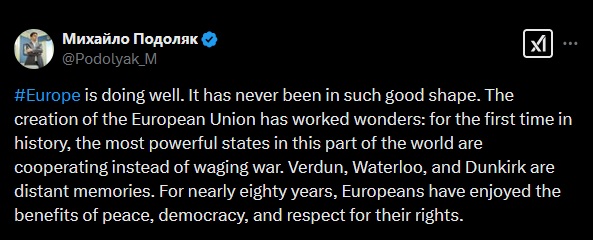 - написал Михаил Подоляк в соцсети X/Twitter.
